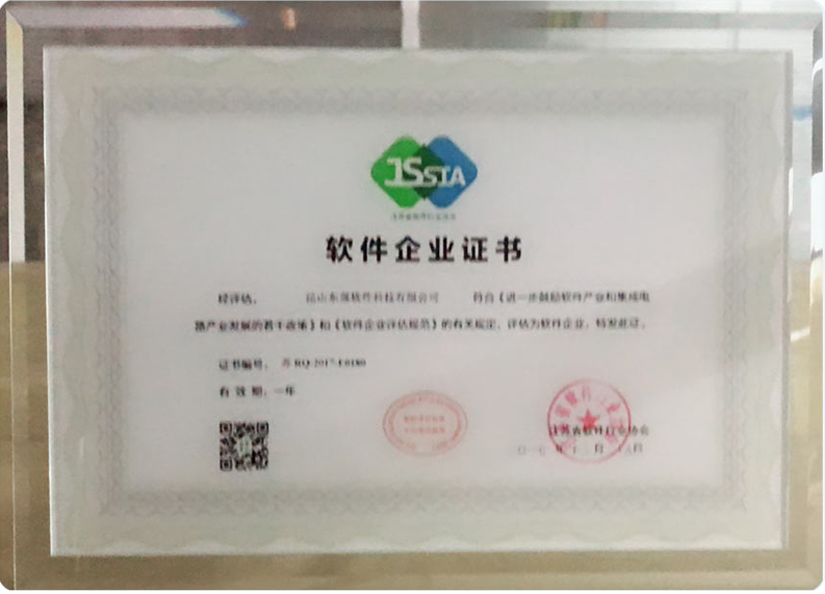 ? 東部軟件榮獲江蘇省軟件協(xié)會頒發(fā)的軟件企業(yè)證書 |