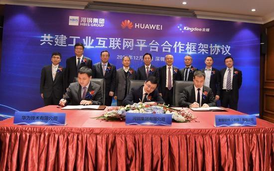 12月19日,河鋼集團(tuán)、華為、金蝶集團(tuán)在深圳正式簽署共建工業(yè)互聯(lián)網(wǎng)平臺(tái)合作框架協(xié)議。