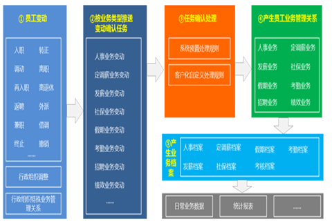一旦前端業(yè)務(wù)(如員工變動)發(fā)生,金蝶s-HR V8.5會自動向后續(xù)薪酬、社保、假勤、績效模塊推送變動確認(rèn)任務(wù),自動按預(yù)定規(guī)則重新建立員工業(yè)務(wù)管理關(guān)系,保證員工工作崗位和角色發(fā)生變化時(shí),其他HR業(yè)務(wù)能夠隨之自動發(fā)生變化,從而消除HR各職能間不能及時(shí)有效聯(lián)動的問題,提高HR工作的流暢度,減少員工因工作崗位發(fā)生變動,很多人事服務(wù)不能自動接續(xù)而產(chǎn)生的抱怨。