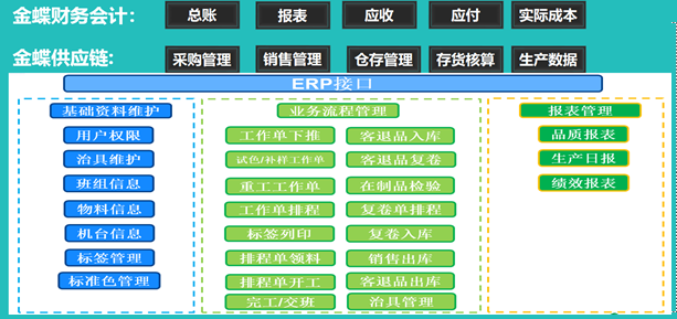在系統(tǒng)上線階段,從簡單到復(fù)雜,先上財務(wù)供應(yīng)鏈等基礎(chǔ)模塊,讓各部門初步接觸并逐漸適應(yīng)ERP的日常工作模式,并在穩(wěn)定的應(yīng)用過程中導(dǎo)入車間MES系統(tǒng),從排程、投料到下機(jī)、檢驗(yàn)、再到復(fù)卷、入庫等過程控制,實(shí)現(xiàn)深度應(yīng)用!