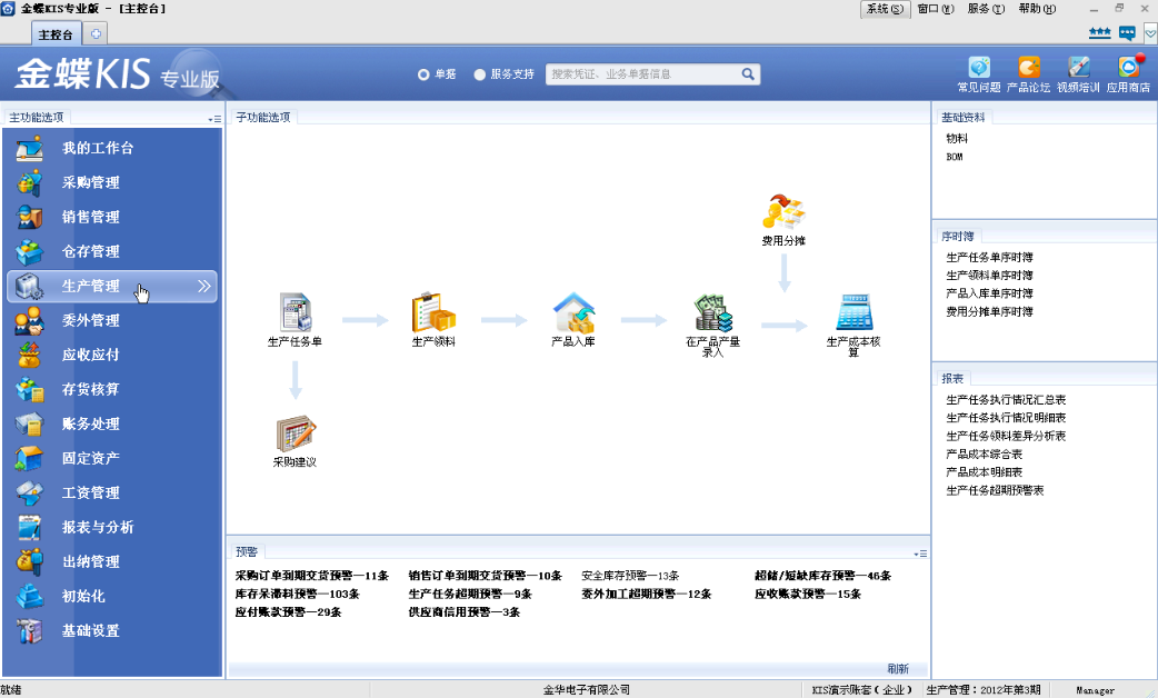 以生產(chǎn)任務(wù)單為核心,進(jìn)行生產(chǎn)領(lǐng)料和產(chǎn)品入庫(kù);按需領(lǐng)料、分批領(lǐng)料,有效記錄領(lǐng)料情況;生產(chǎn)進(jìn)度全程跟蹤,提供多維度生產(chǎn)統(tǒng)計(jì)分析報(bào)表;費(fèi)用分?jǐn)?,生產(chǎn)成本自動(dòng)核算;支持多級(jí)BOM管理。